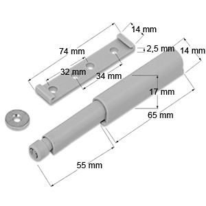 Druckschnäpper Push to open mit Magnet in lichtgrau / weiß / schwarz