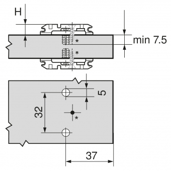 - Blum 174H710ZE = 0 mm Distanz / 8,5 mm Höhe