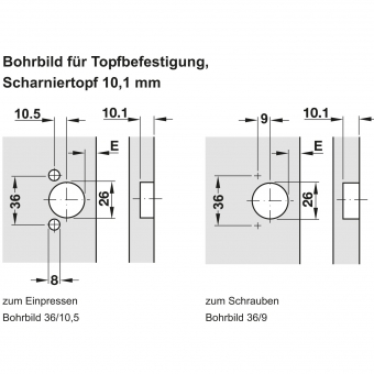 - Topfbefestigung zum einpressen, am Korpus zum Schrauben