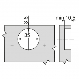 Spezialscharnier für breite Holztüren, Eckanschlag Topfscharn. + MPL/Kappen - eck 95°, TB bis 900 mm
