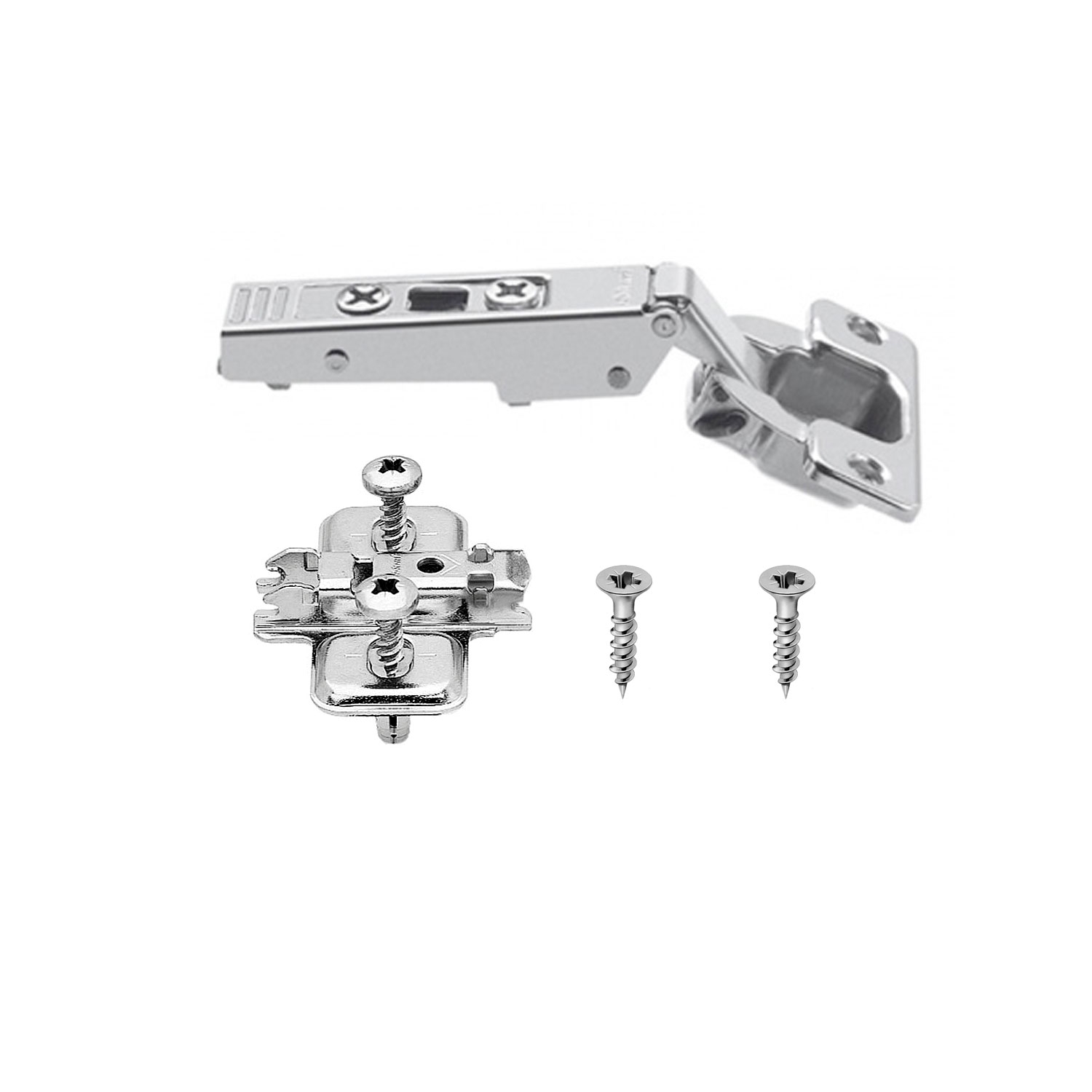 CLIP Standardscharnier 71M2550 Öffnungswinkel: 100° Kröpfung: Eckanschlag Topf-Befestigung: Schrauben Topf-Material: Stahltopf Schließmechanismus: mit Feder Seitenverstellung: +/- 2 mm Tiefenverstellung: + 3/- 1 mm, mit Schraube