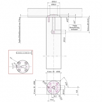 Set für Tischbeindurchmesser 50 mm (4 x Ankerplatte D01106 / 4 x Ankerbolzen D01107)