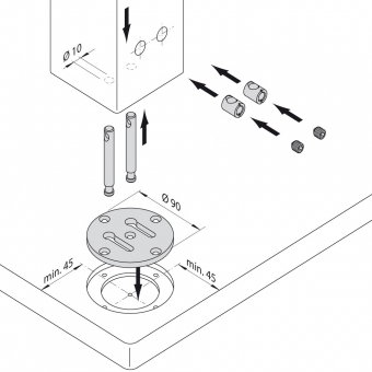 Set für Tischbeindurchmesser 90 mm (4 x Ankerplatte D01100 / 8 x Ankerbolzen D01101)