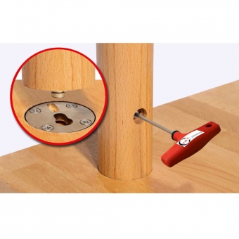 Das XS-Beschlagsystem wurde jetzt um einen Ankerdübel zur Montage von starken Tischfüssen (ab 50/90 mm Stärke) ergänzt. Die Befestigung erfolgt direkt an der Tischplatte. Mit diesem Beschlagsystem ist eine schnelle und moderne Tischfabrikation möglich.