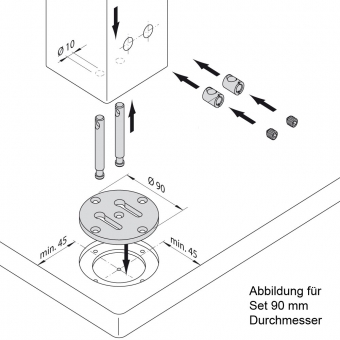 Set für Tischbeindurchmesser 90 mm (4 x Ankerplatte D01100 / 8 x Ankerbolzen D01101)