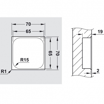 - Außendurchmesser 70 mm / Innendurchmesser 65 mm / Griffmulde Ø 50 mm