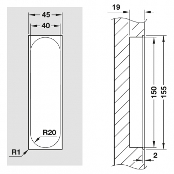 Maße: 45 x 150 x 19 mm (B x H x T)