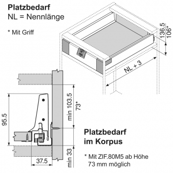 - M = 83 mm / Platzbedarf Höhe im Korpus 106 mm
