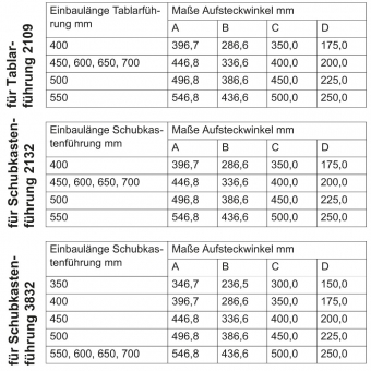 Für Schubkastenführungen 3832:
