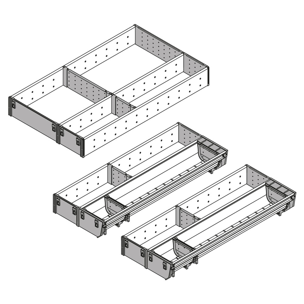Die Inneneinteilungssysteme von ORGA-LINE sind Sets, die den gesamten Schubkasten ausfüllen. Sie nutzen den Stauraum optimal und sind exakt auf die unterschiedlichen Staugüter abgestimmt. Für hohe Staugüter im Frontauszug werden Längs- und Querteiler, für niedrige Staugüter werden Schalen und Facheinteilungen eingesetzt.