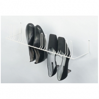 Der Schuhträger besteht aus kunststoffbeschichtetem Stahldraht in weiß.