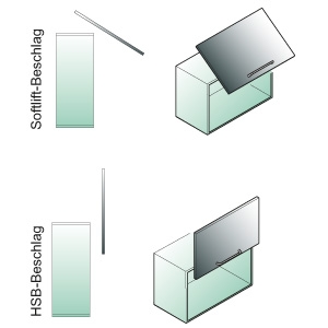 Gasfeder als Ersatzteil verwendbar bei Lifttüren der Firmen Kesseböhmer / Hettich / Häfele /  Soft- Liftbeschlag - und HSB-Beschläge wie abgebildet.