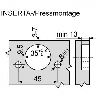 - Scharnier für große Überdeckung bei dicken Korpusseiten von 19 bis 22 mm
