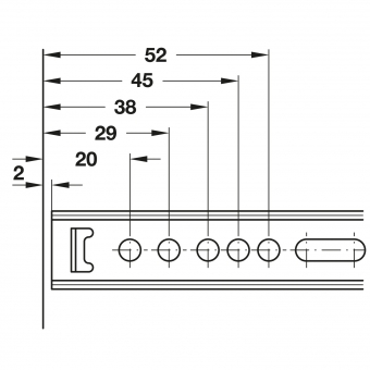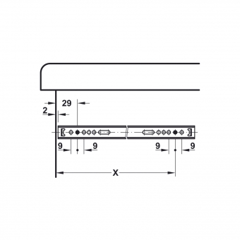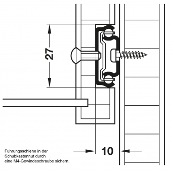 Maximale Schubkastenbreite: lichte Korpusbreite -20 mm + doppelte Nuttiefe
