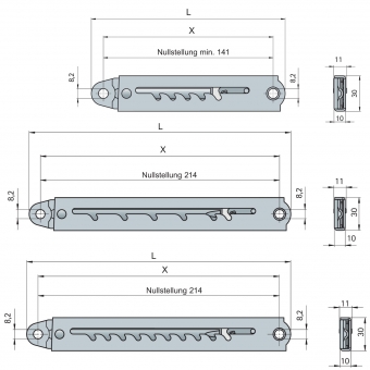 · Verstellbereich (Achse-Achse) von 214 mm bis 354 mm