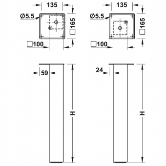 - Fuß 100 x 100 mm - Anschraubplatte 180 x 180 mm