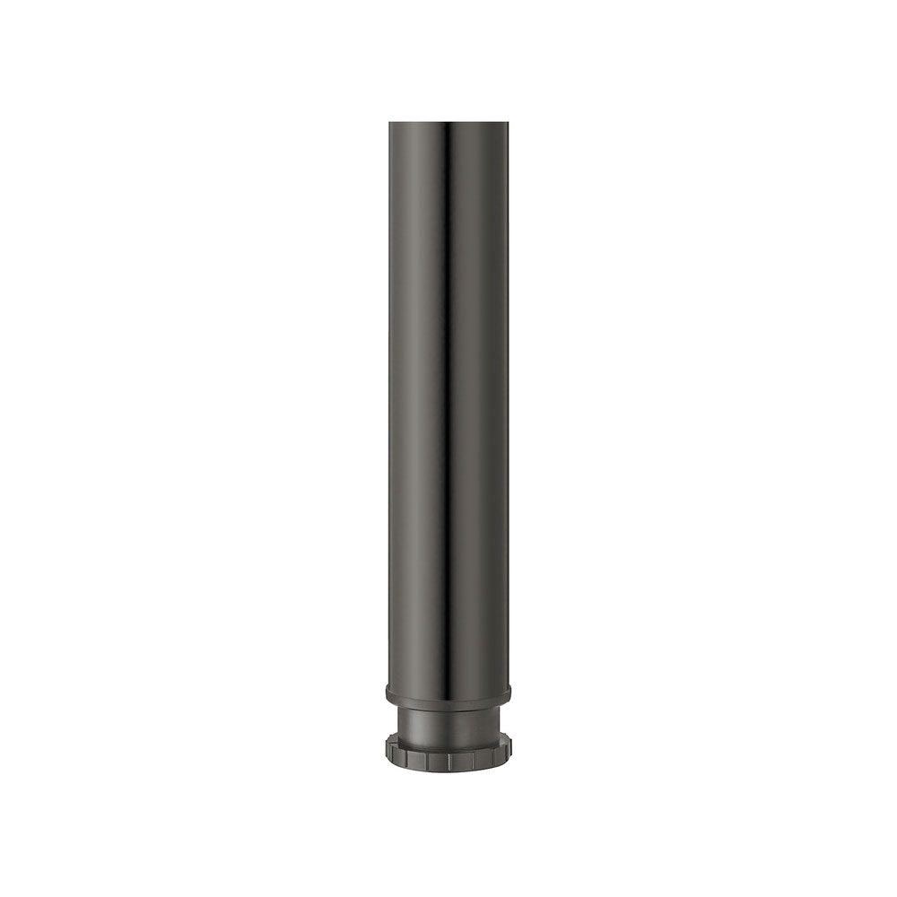 Tischbein Rondella in zylindrischer Form aus Stahl mit Höheneinstellung aus schwarzem Kunststoff (Verstellbereich + 25 mm) für mehrschichtverleimte Tischplatten ab 40 mm Dicke. Die Bauhöhe beträgt 470-900 mm. Der Durchmesser des Tischbeins ist 60 mm. Die dunkelgraue Anschraubplatte besteht aus Zinkdruckguss, der Gleiter aus schwarzem Kunststoff. Hinweis: Bauhöhe ist Tischbein mit Anschraubplatte.