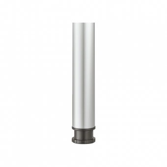 Tischbein Rondella in zylindrischer Form aus Stahl mit Höheneinstellung aus schwarzem Kunststoff (Verstellbereich + 25 mm) für mehrschichtverleimte Tischplatten ab 40 mm Dicke. Die Bauhöhe beträgt 470-900 mm. Der Durchmesser des Tischbeins ist 60 mm. Die dunkelgraue Anschraubplatte besteht aus Zinkdruckguss, der Gleiter aus schwarzem Kunststoff. Hinweis: Bauhöhe ist Tischbein mit Anschraubplatte.