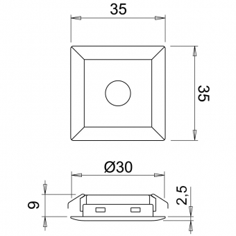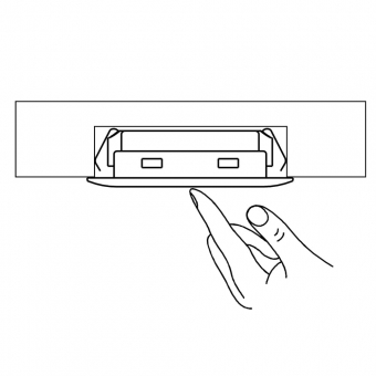 Ein- / Aus-Schalten durch Berühren der kleinen LED in der Mitte des Sensors. Während des Betriebs der Leuchten hängt das von der TOUCH ME LED abgegebene Licht von der Regulierung der Leuchten ab. Die integrierte "Night-Light"-Funktion“ (nur bei ausgeschaltetem Licht aktiv) lässt die LED von TOUCH ME bei schwächerem Umgebungslicht heller aufleuchten. Diese Funktion kann durch Berühren des Schalters aktiviert bzw. deaktiviert werden. Das Sicherheitsprogramm von TOUCH ME schaltet die daran angeschlossenen Leuchten nach 18 Stunden Dauerbetrieb automatisch ab. Dieser Einbau-Sensorschalter wird zwischen Netzgerät und Leuchte angeschlossen.