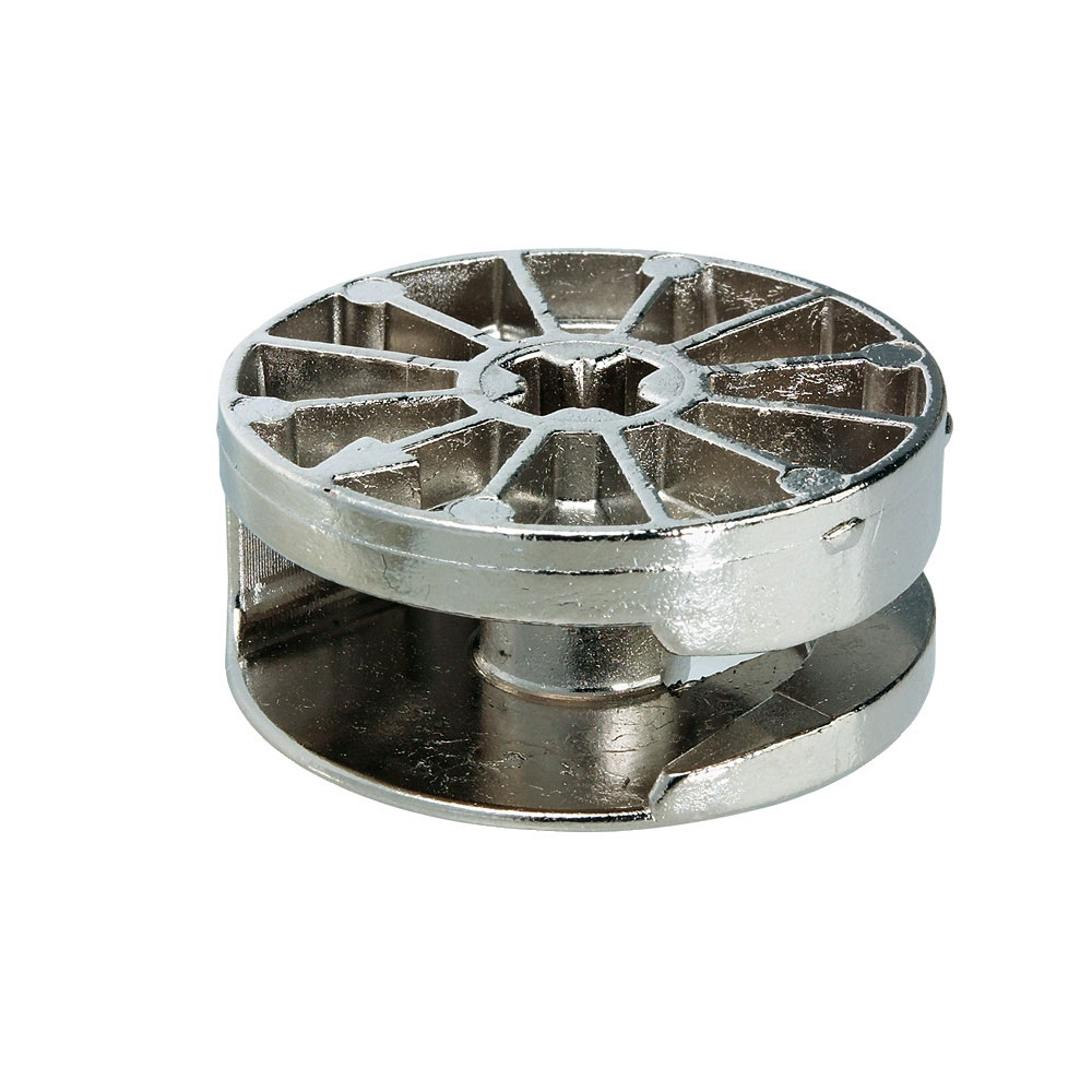 Durch seine hohe Belastbarkeit eignet sich der starke Bruder des bewährten Minifix-Möbelverbinders für schwere Korpusse, Betten, Stollenwände, Regale, Gestelle und Trennwände sowie für den Laden- und Messebau.