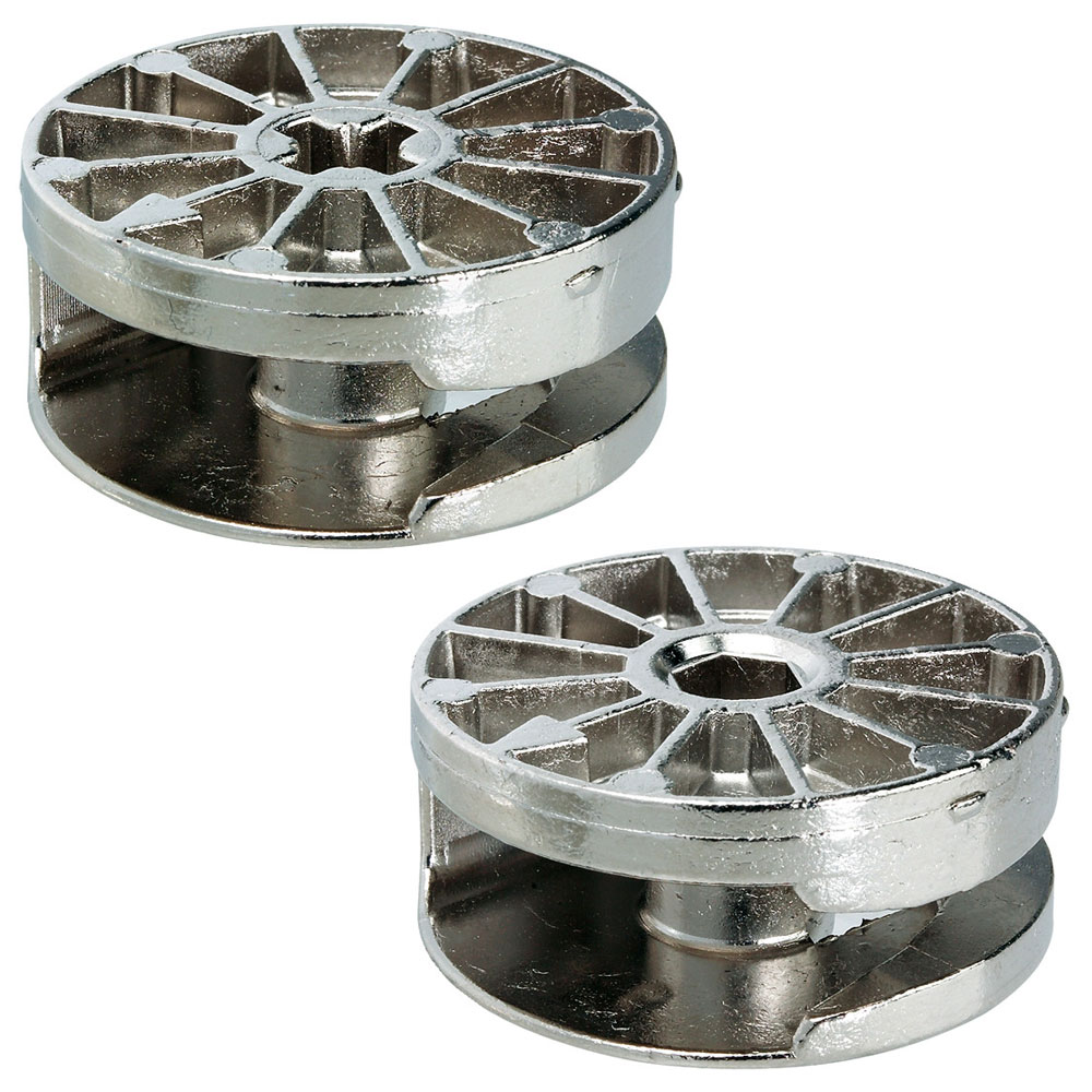 Durch seine hohe Belastbarkeit eignet sich der starke Bruder des bewährten Minifix-Möbelverbinders für schwere Korpusse, Betten, Stollenwände, Regale, Gestelle und Trennwände sowie für den Laden- und Messebau.