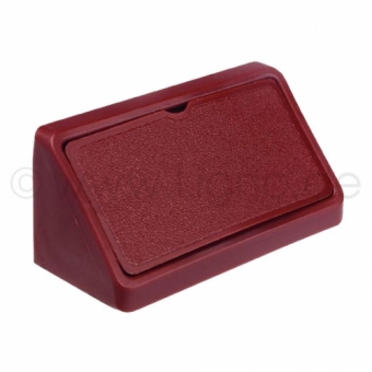 Gehäuse mit Abdeckkappe aus Kunststoff in weiß, beige und dunkelbraun. Der Eckverbinder wird mittels Schrauben montiert, welche durch die Kappe verdeckt werden. Die Breite des Beschlags beträgt 44 mm, Höhe und Tiefe betragen 21 mm.