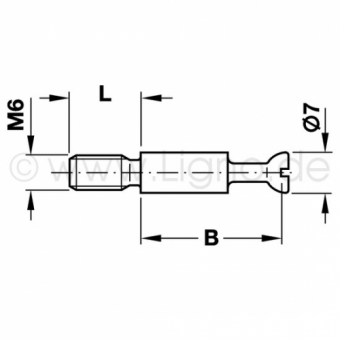 Bohrmaß B: Abstand von Minifix-Gehäusemitte bis Vorderkante 24 / 34 mm (abhängig vom gewähltem Bolzen)