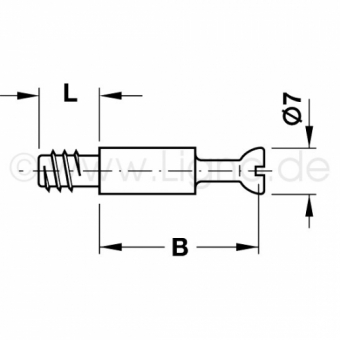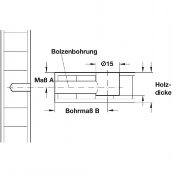 Bohrmaß B: Abstand von Minifix-Gehäusemitte bis Vorderkante 24 / 34 mm (abhängig vom gewähltem Bolzen)