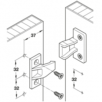 Zum Einhängen eines rechteckigen Paneels sind mindestens 4 Beschlagpaare erforderlich. Der Abstand ist abhängig von der Plattendicke, der Anordnung der Befestigungspunkte und sollte 600 mm nicht überschreiten. Zur gleichmäßigen Verteilung der Last müssen die Beschläge passgenau angeschraubt werden.