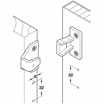 Zum Einhängen eines rechteckigen Paneels sind mindestens 4 Beschlagpaare erforderlich. Der Abstand ist abhängig von der Plattendicke, der Anordnung der Befestigungspunkte und sollte 600 mm nicht überschreiten. Zur gleichmäßigen Verteilung der Last müssen die Beschläge passgenau angeschraubt werden.