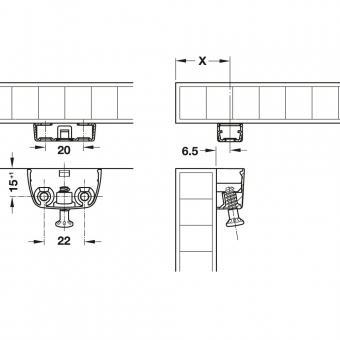 Maß X: Holzdicke + 6,5 mm