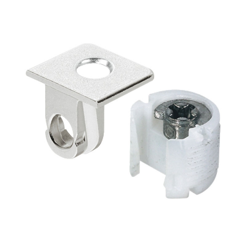 Der Möbelbeschlag Tab 18 ist als Korpus- und Tablarverriegelung mit Verriegelung und als Tablarverbinder ohne Verriegelung erhältlich: