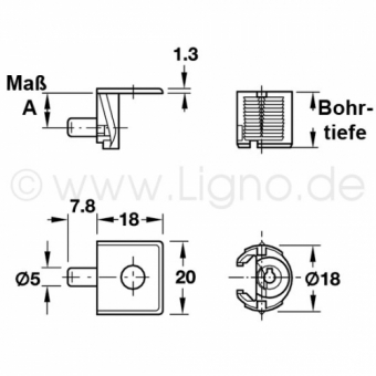 - Einbohrteil 18 mm - Trägerteil 5 mm