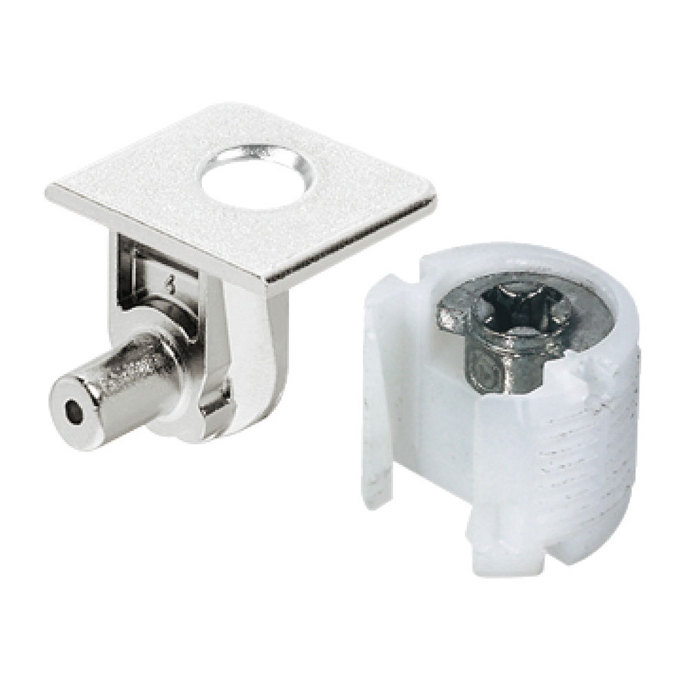 Der Möbelbeschlag Tab 18 ist als Korpus- und Tablarverriegelung mit Verriegelung und als Tablarverbinder ohne Verriegelung erhältlich: