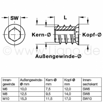 - Außengewinde ø 12 mm, Kern ø 9,5 mm