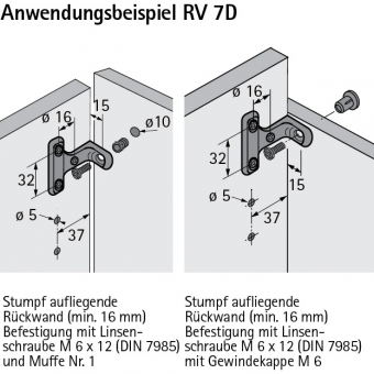 Der RV 7 D kann mit verschiedenen Befestigungselementen montiert werden: mit Senkkopfschraube, mit Linsenschrauben M6 x 12 (DIN 7985) und oder mit Direktbefestigungsschraube