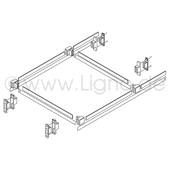 - 4 Relingstangen - 4 Längsrelingshalter - 4 Querrelingshalter - 4 Überwurfmuffen - 4 Gleitprofile - Montageanleitung