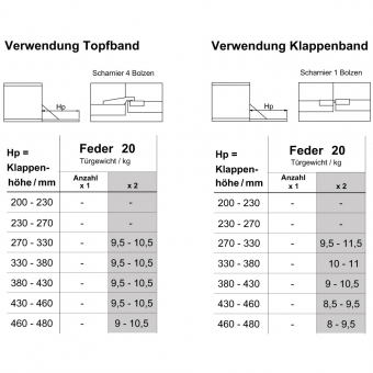 - Klappenhöhe 270-480 m - Holz- / Rahmentüren bis 10 kg