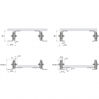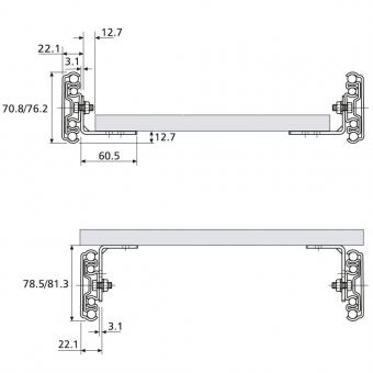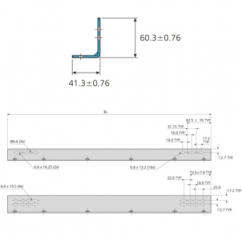 Die seitenneutralen Winkel bieten 6 Montagemöglichkeiten (4 unten und 2 seitlich) und sind für die Einbaulängen 305-1524 mm geeignet.