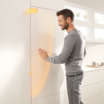 Die elektrische Öffnungsunterstützung SERVO-DRIVE flex von Blum für alle gängigen integrierten Kühlgeräte, Kühl-Gefrier-Kombinationen, Gefrierschränke und Geschirrspüler.