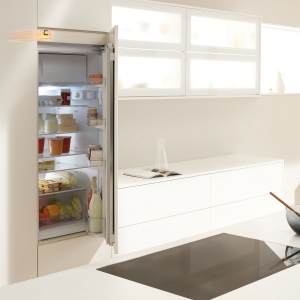 Die elektrische Öffnungsunterstützung SERVO-DRIVE flex von Blum für alle gängigen integrierten Kühlgeräte, Kühl-Gefrier-Kombinationen, Gefrierschränke und Geschirrspüler.