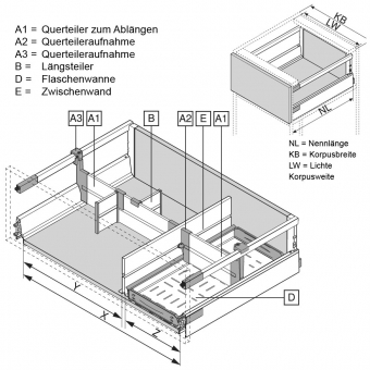 - Für TANDEMBOX-Frontauszug, Grundelement, Höhe D mit doppelwandiger BOXSIDE